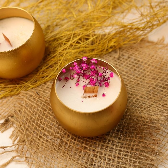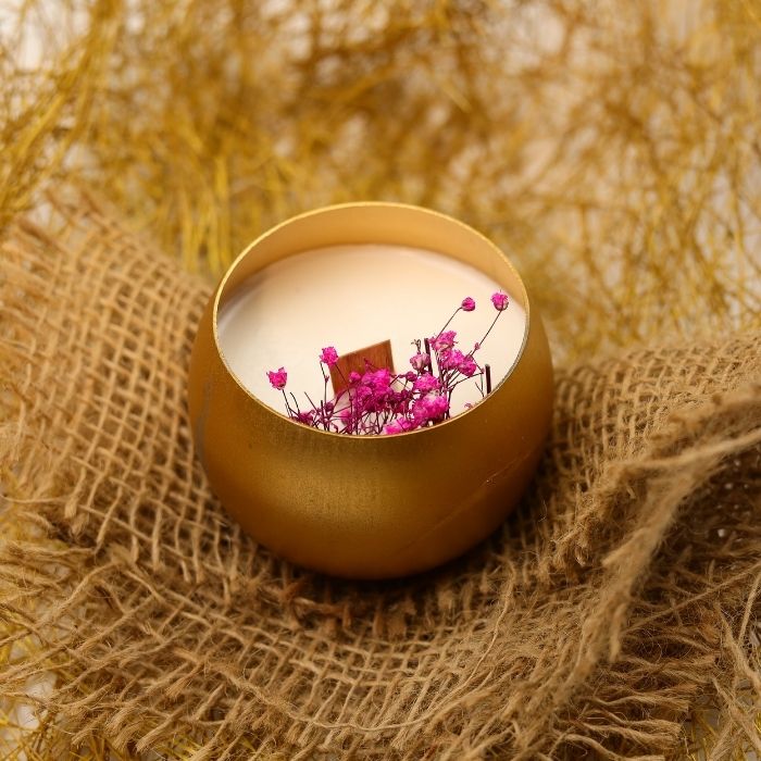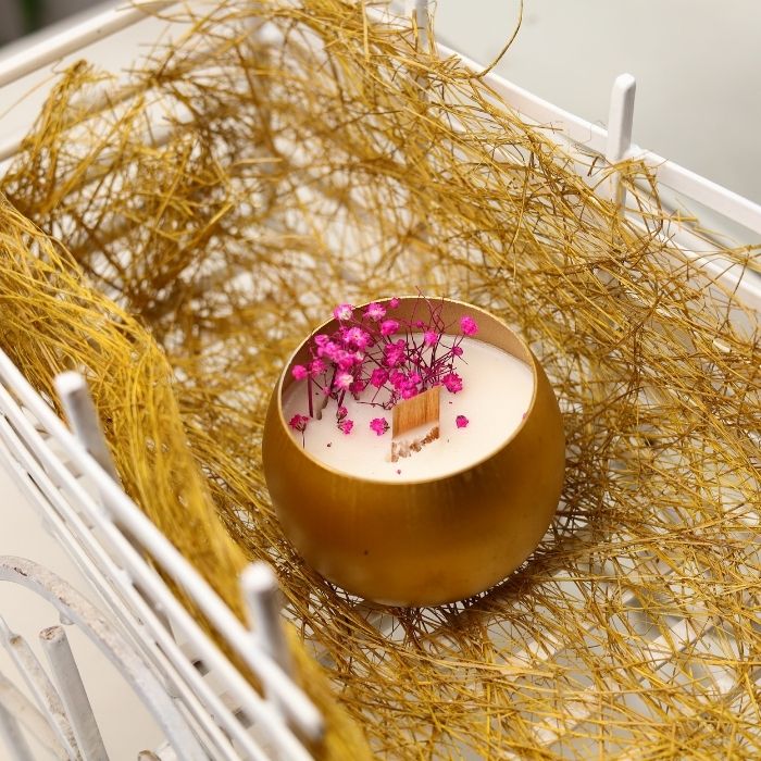 Design: Wooden wick, dried flowers, gold touch
